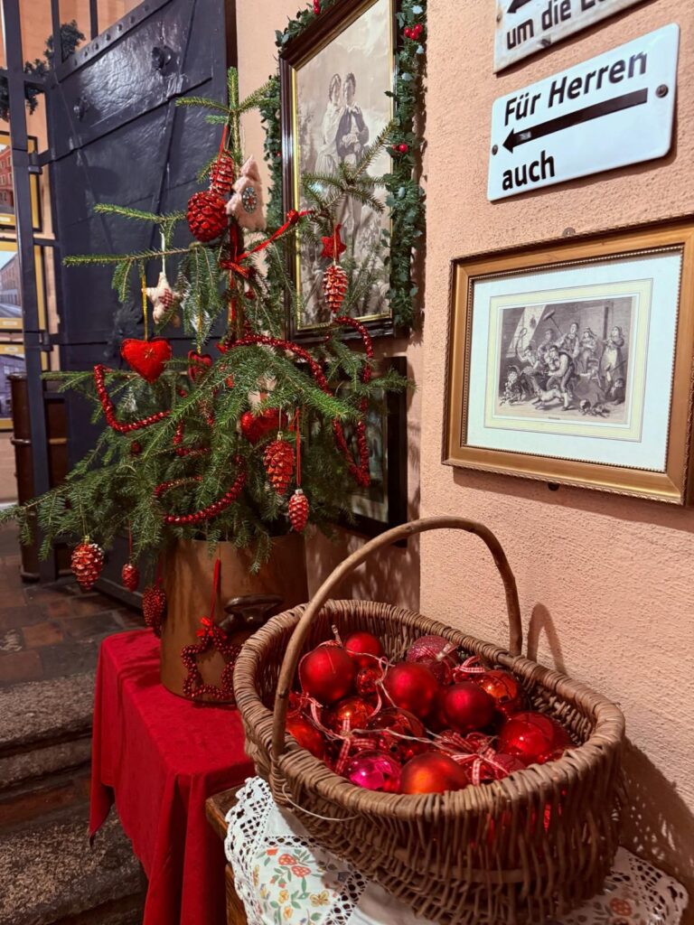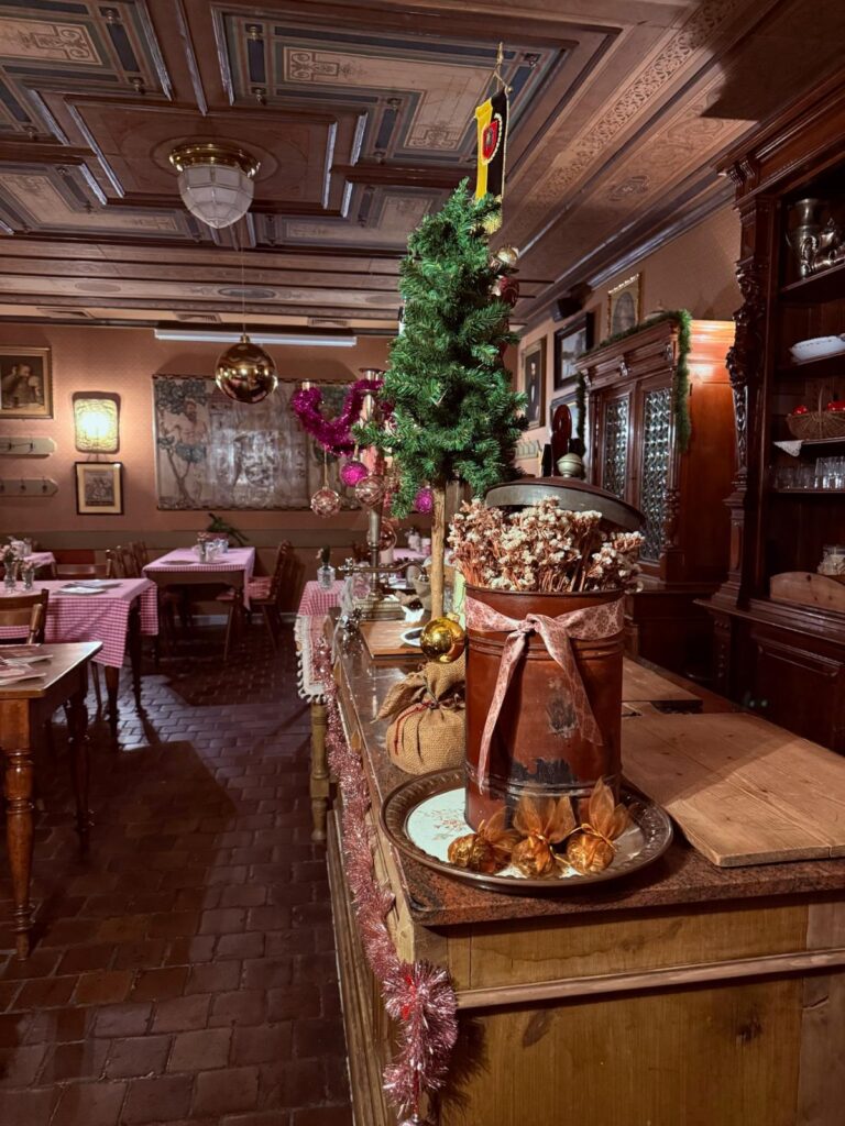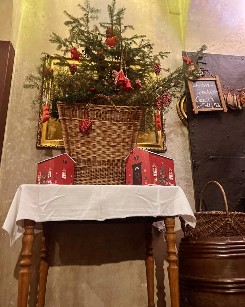 Jeder Raum wird mit viel Herz und einer besonderen Liebe zum Detail dekoriert: traditionelle Weihnachtskugeln, immergrüne Zweige, zarte Lichter und kleine Schätze aus alten Zeiten. So verwandelt sich jede Räumlichkeit in eine Art kleiner Zauberwald, der die Magie der Weihnachtszeit spürbar macht.